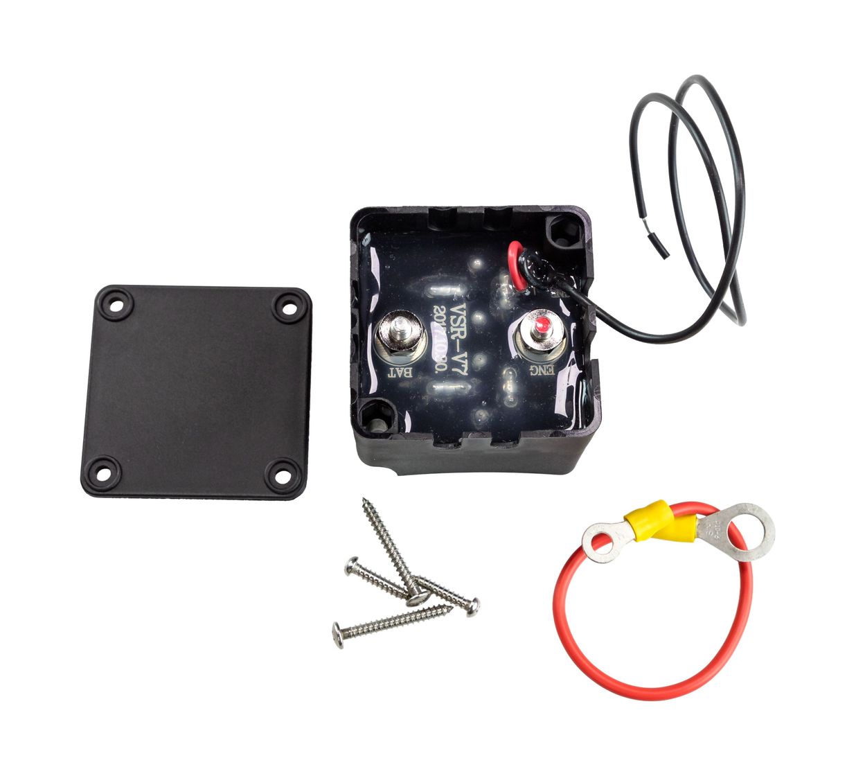 Реле автоматически подключает второй (сервисный) аккумулятор при зарядке от мотора и отключает когда мотор не работает.
