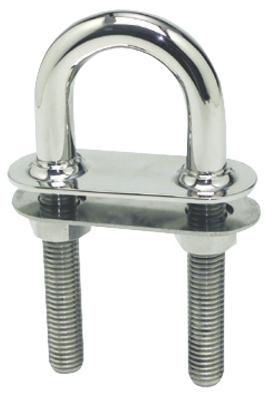 Рым-болт U-образный с 2 гайками и крепежной пластиной из нержавеющей стали.