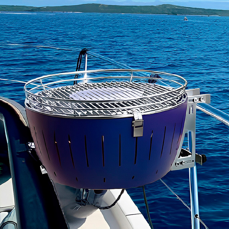 Центральная пластина из нержавеющей стали в решетке гриляотводит жир, выделяющийся при приготовлении пищи, и направляет его вовнутреннюю чашу LotusGrill, предотвращая его попадание на угли. Благодаря этомуобразование дыма во время приготовления сводится к минимуму.