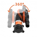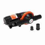 Диафрагменная помпа для сточных вод. Используется для откачивания фекальных стоков, а также стоков из раковин и душа. Не повреждается при сухой работе. Имеет двойные клапаны большого сечения, легко пропускающие твердые частицы, но препятствующие обратному току жидкости. Рабочий блок помпы может быть повернут на 360 градусов для удобства установки. Патрубки 19 и 38 мм.