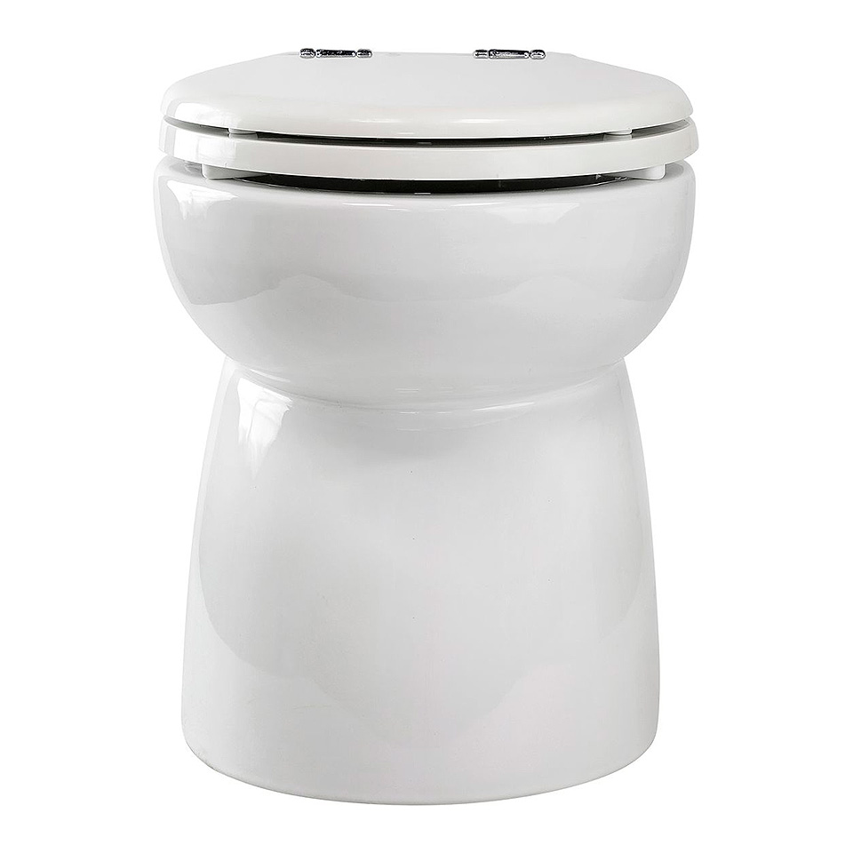 Электрический яхтенный унитаз с эффектом вакуумного смыва. Работает значительно тише традиционных аналогов. Обладает очень тихим и коротким циклом смыва, расходуя при этом очень незначительное количество воды (1-1,5 л на смыв), что позволяет реже опорожнять фекальный бак. Керамическая чаша унитаза может очищаться любыми видами чистящих средств, включая порошковые. Штатная помпа способна удалить стоки на расстояние до 70 метров от места установки унитаза (высота подъема — до 5 м). В отличие от традиционных унитазов не нагнетает самостоятельно воду для смыва, поэтому для работы требуется наличие на борту централизованной системы подачи воды под давлением (дополнительно необходимо приобрести электромагнитный клапан, управляющий подачей воды) или установка отдельной помпы для подачи воды на смыв.