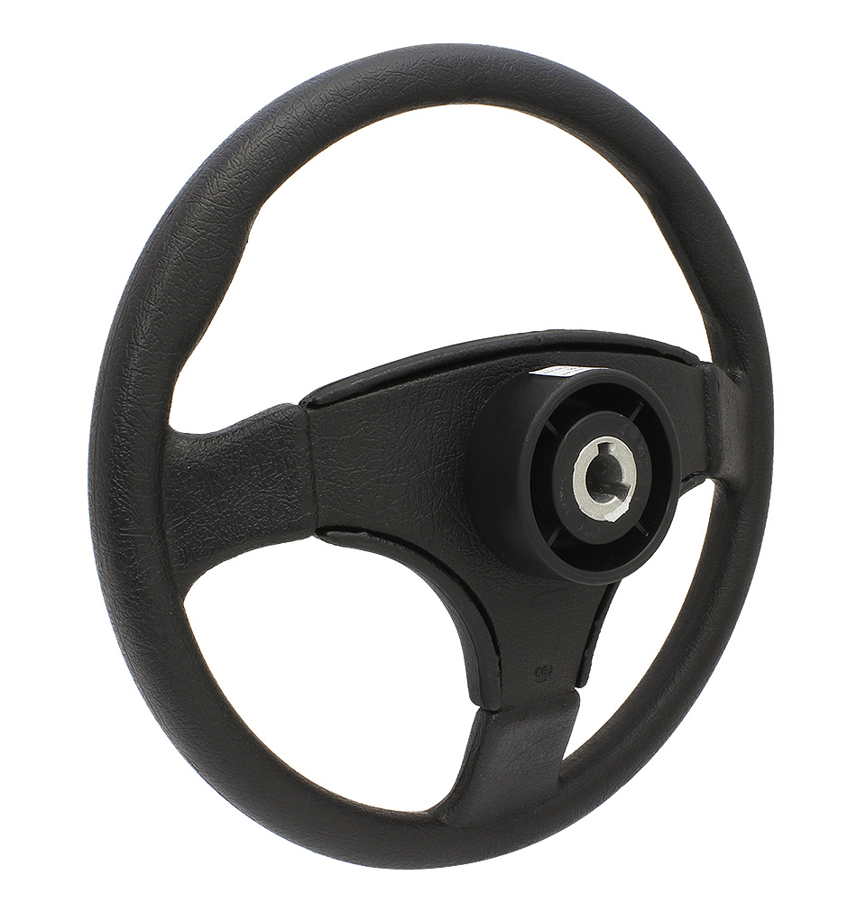 Пластиковое рулевое колесо с ободом диаметром 350 мм. Ступица треугольной формы с конусом стандартного размера.