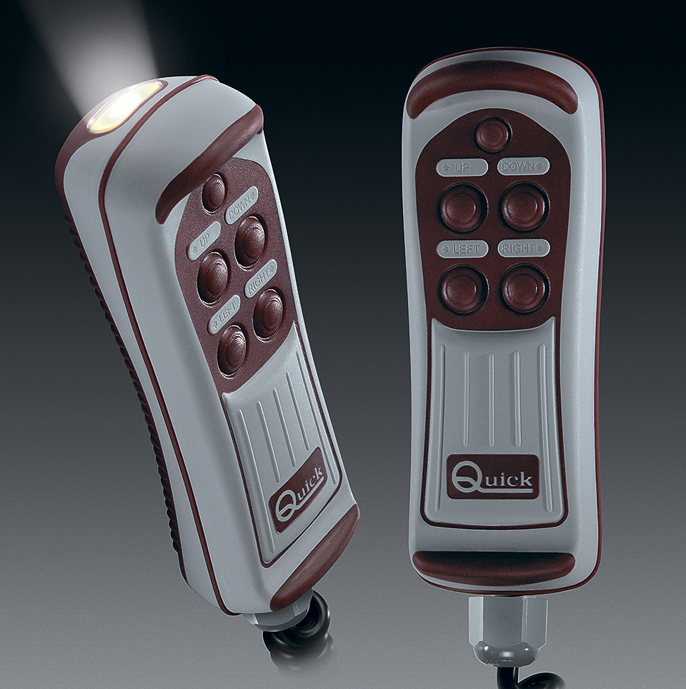 Универсальный пульт управления в защищенном от воды корпусе (IP67) на витом шнуре. Позволяет управлять якорными лебедками, подруливающими устройствами и т.п. электрическими устройствами (Внимание! Мощные потребители электроэнергии должны быть подключены через пусковые реле/соленоиды.) В комплекте – водонепроницаемая розетка и пластиковый держатель. Часть моделей снабжена экономичным светодиодным фонариком, включаемым отдельной кнопкой.