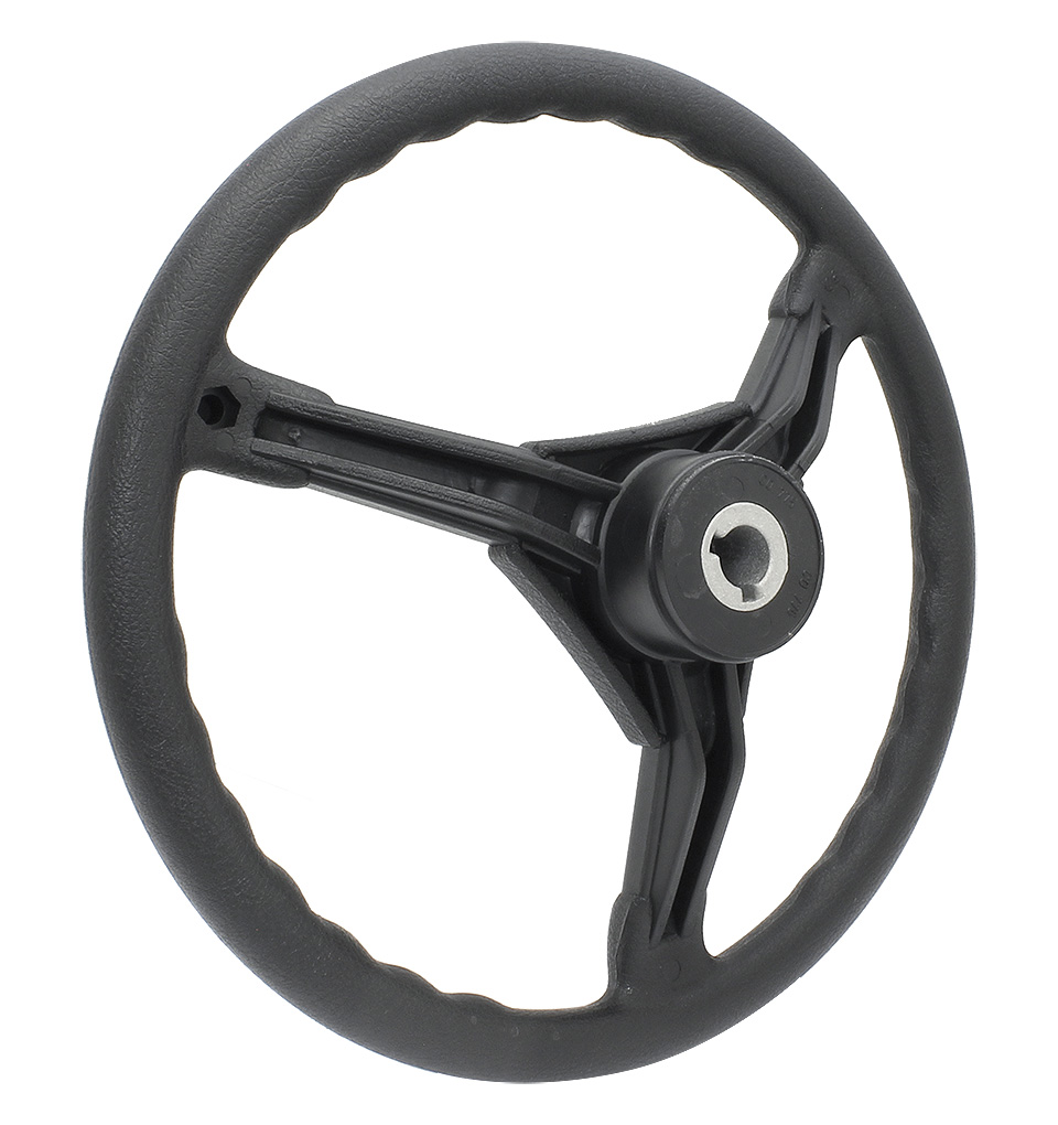 Пластиковое рулевое колесо с ободом диаметром 335 мм. Ступица круглой формы с конусом cтандартного размера.