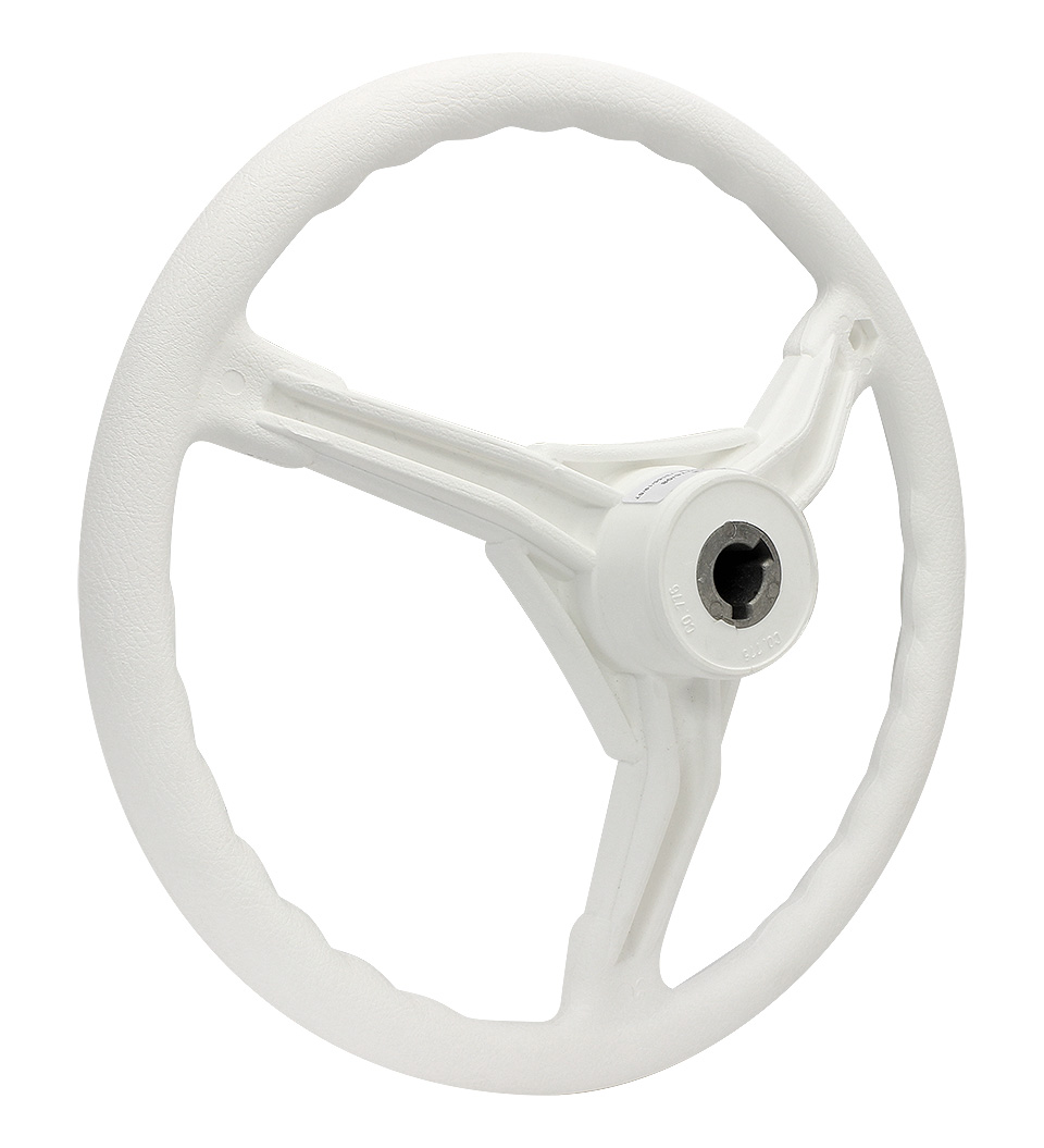 Пластиковое рулевое колесо с ободом диаметром 335 мм. Ступица круглой формы с конусом cтандартного размера.