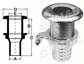 Код | Резьба (дюймовая) | А, мм | В, мм | С, мм | D, мм | Е, мм |