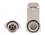 Пластиковый сливной шпигат. Снабжен резиновым клапаном, предотвращающим обратный ток воды и заслонкой, полностью перекрывающей слив. Выполнен из пластика серого цвета.
