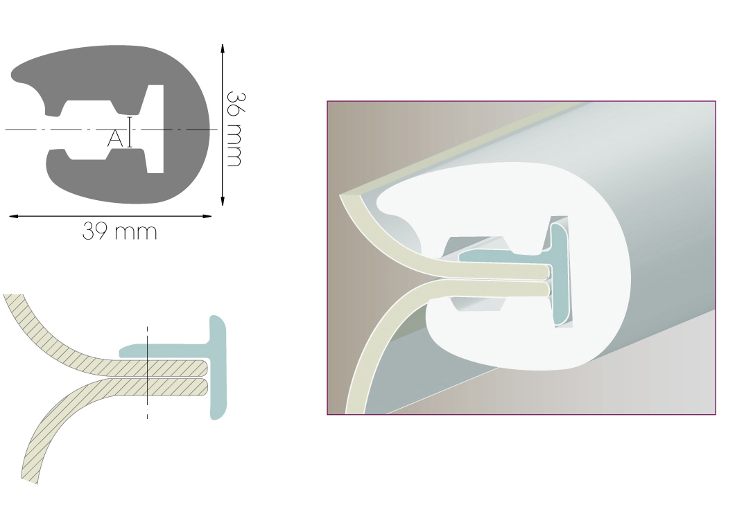Привальный брус из поливинилхлорида. Для установки требуется прибрести Т-образный профиль (продается планками по 2 метра) , который крепится к борту судна, после чего на него одевается привальный брус.