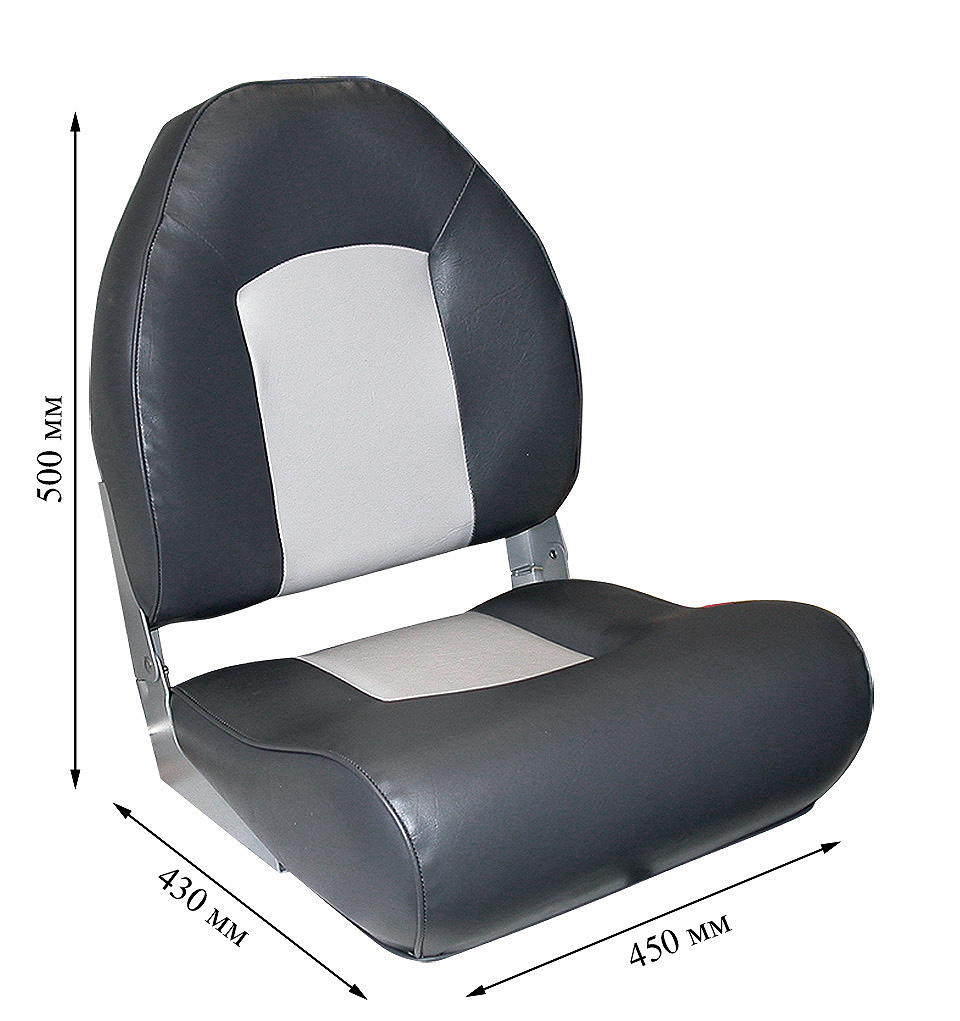 Мягкое сиденье со складной спинкой и боковой поддержкой. Обивка из винила, устойчивого к воздействию влаги и ультрафиолета и не впитывающего жидкостей.