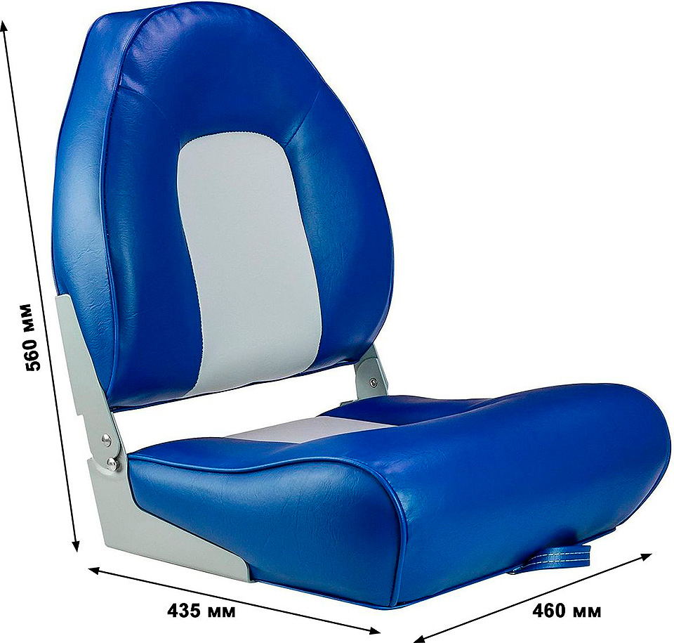 Мягкое сиденье со складной спинкой и боковой поддержкой. Обивка из винила, устойчивого к воздействию влаги и ультрафиолета и не впитывающего жидкостей.