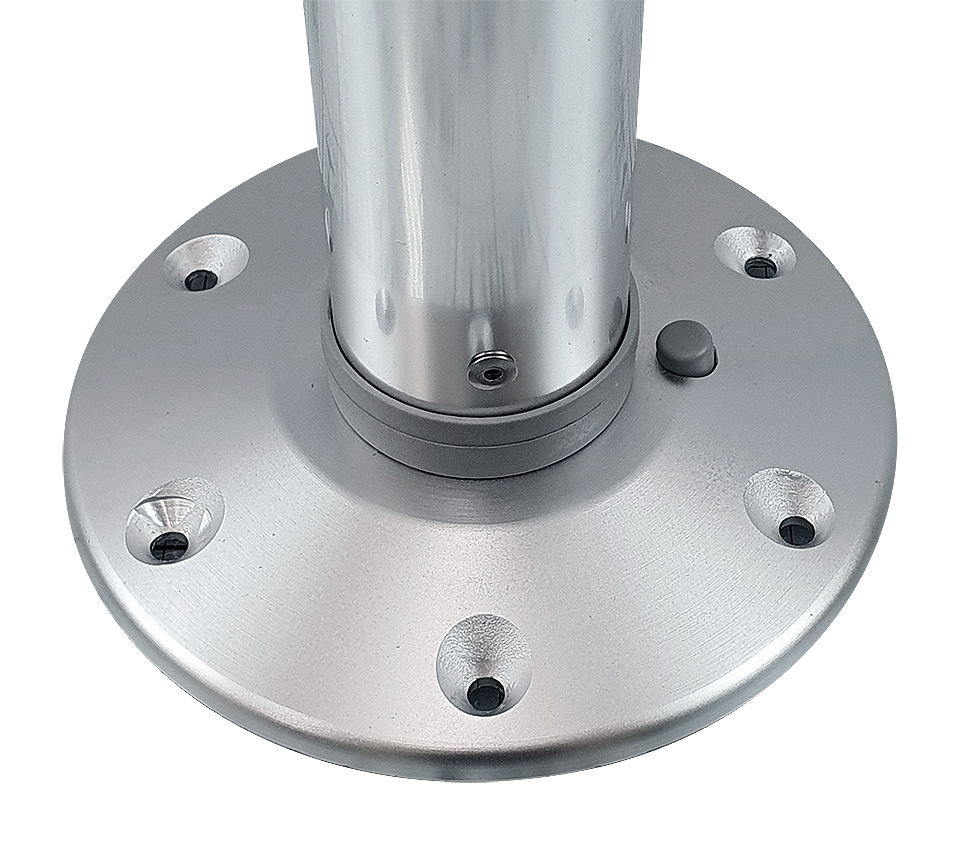 Стойка для столешницы. Регулируемая высота (50-70 см). Демонтируемая конструкция. Быстроразъемное крепление к основанию. Основание накладное (не требует врезания и наличия места под палубой в месте установки). Можно приобрести дополнительное основание, что позволит менять место установки стойки (№ 10250575).