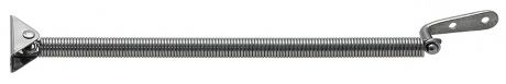 Пружинный держатель для крышек люков, рундуков, шкафчиков и т.п. Удерживает крышку в поднятом состоянии, находясь в прямом положении. Легко складывается и не мешает закрытию, будучи предварительно слегка согнутым.