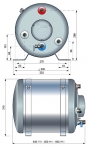 Судовой бойлер. Позволяет нагревать воду с помощью ТЭНа (мощностью 500 либо 1200 Вт) от электросети напряжением 220 В, либо от системы охлаждения двигателя (горячий антифриз поступает в теплообменник, 3-метровую нержавеющую спираль, где отдает тепло нагреваемой воде). Поставляется в различных вариантах: с двойным нагревом (с теплообменником - от двигателя и ТЭНом - от сети 220 В), только с теплообменником, либо только с ТЭНом. Бак для воды и внешний корпус изготовлены из нержавеющей стали. Теплоизоляция выполнена из полиуретановой пены. В стандартную комплектацию входит предохранительный невозвратный клапан, обеспечивающий постоянное наполнение бойлера водой и защиту от избыточного давления (он же позволяет спустить воду перед зимним хранением). Максимальная температура нагрева от сети 220 В регулируется с помощью термостата в пределах 40-80 градусов Цельсия (заводская настройка – 60 градусов). Максимальная температура нагрева от системы охлаждения двигателя зависит от интенсивности работы двигателя и настроек термостата его штатной системы охлаждения.