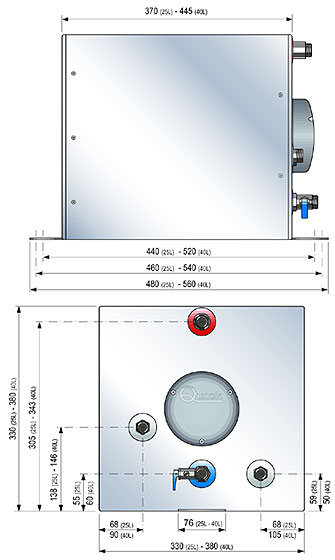Судовой бойлер. Позволяет нагревать воду с помощью ТЭНа (мощностью 500 либо 1200 Вт) от электросети напряжением 220 В, либо от системы охлаждения двигателя (горячий антифриз поступает в теплообменник, 3-метровую нержавеющую спираль, где отдает тепло нагреваемой воде). Поставляется в различных вариантах: с двойным нагревом (с теплообменником - от двигателя и ТЭНом - от сети 220 В), только с теплообменником, либо только с ТЭНом. Бак для воды и внешний корпус изготовлены из нержавеющей стали. Теплоизоляция выполнена из полиуретановой пены. В стандартную комплектацию входит предохранительный невозвратный клапан, обеспечивающий постоянное наполнение бойлера водой и защиту от избыточного давления (он же позволяет спустить воду перед зимним хранением). Максимальная температура нагрева от сети 220 В регулируется с помощью термостата в пределах 40-80 градусов Цельсия (заводская настройка – 60 градусов). Максимальная температура нагрева от системы охлаждения двигателя зависит от интенсивности работы двигателя и настроек термостата его штатной системы охлаждения. Максимальное давление воды в баке: 6 Bar. Производитель: «Quick», Италия.