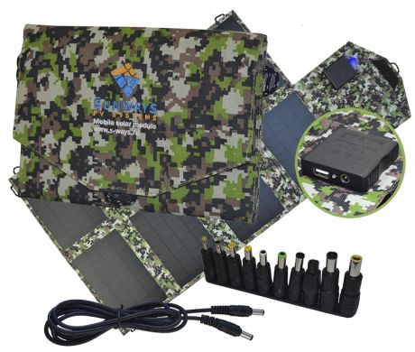 Обновленная линейка мобильных солнечных модулей Sunways еще лучше решает проблему энергоснабжение Вашего слаботочного оборудования в походах и путешествиях! Солнечный модуль изготовлен из монокристаллических солнечных элементов. Мобильный солнечный модуль FMS-21М предназначен для заряда мобильных телефонов и устройств с возможностью подключения через порт USB. Продвинутый контроллер заряда со светодиодной индикацией и наличие выхода на 18 В с десятью переходниками для большинства ноутбуков, позволяет подзаряжать ноутбуки, камеры, фотоаппараты, планшеты и аккумуляторные батареи с номинальным напряжением 12 В. Модуль имеет удобную конструкцию и в транспортном положении складывается в папку. Максимальное напряжение заряда 5,5 В/18 В, максимальный ток заряда 2 А/1,55 А гарантируют безопасный заряд Вашего устройства.