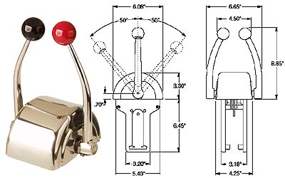 Привод дистанционного управления газом и реверсом классической конструкции в корпусе из полированной нержавеющей стали. Каждый рычаг управляет только одним тросом (либо газом, либо реверсом). Привод снабжен патентованным устройством, предотвращающим самопроизвольное смещение рукоятки газа и стопором для рукоятки реверса. Возможна установка одного (требуется установочный комплект, код 10015378) или двух постов управления (требуется установочный комплект, код 10015379). В качестве опции привод может снабжаться выключателем-блокиратором нейтрали и наконечниками управляющих рычагов (шариками) из нержавеющей стали (с насечками для газа и гладкими для реверса). Совместимы с тросами универсального типа (с резьбовыми наконечниками).