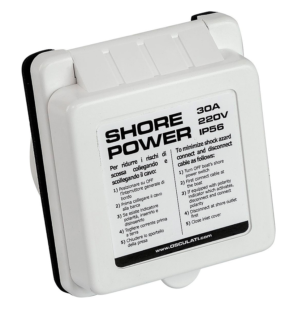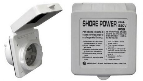 Розетка с крышкой на защелке и резиновым уплотнителем. Три контакта. Корпус и крышка из пластика.