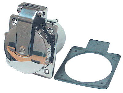 Розетка с резьбовой крышкой и резиновым уплотнителем. Три контакта.