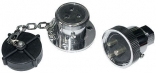 2-, 3- и 4-контактные водонепроницаемые электрические разъемы. Предназначены для наружного подключения разнообразных демонтируемых электрических устройств небольшой мощности (36-60 Вт при бортовом напряжении 12 В или 72-120 Вт при напряжении 24 В). Корпус — гальванизированная бронза. От проникновения воды в разомкнутом расстоянии разъем защищает резьбовая пластиковая пробка, укрепленная на цепочке.