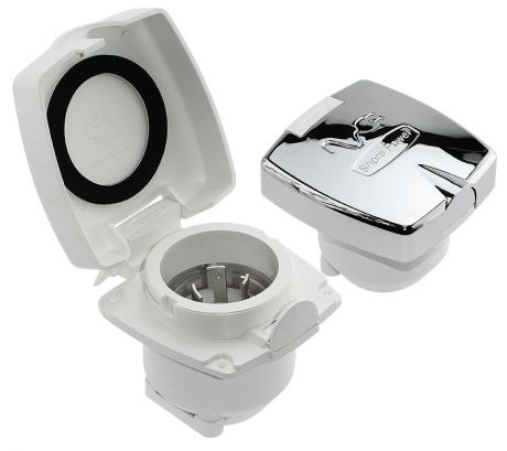 Розетка  с  крышкой  на защелке и резиновым уплотнителем. Три контакта (посеребренная латунь). Корпус икрышка из  УФ-стойкого пластика Luran.