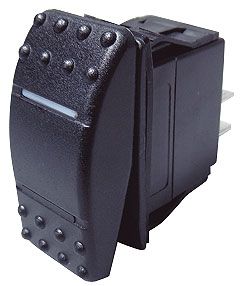 Клавишные выключатели в брызгозащитном исполнении (IP56). Снабжены светодиодными индикаторами. Представлены в 4 вариантах исполнения (двухпозиционные, двухпозиционные с возвратной пружиной, трехпозиционные, трехпозиционные с возвратной пружиной). Модели с возвратной пружиной рекомендуется использовать для подключения оборудования, работающего кратковременно (к примеру, сигнальные горны, сирены) или оборудования, работа которого должна быть возможна только под постоянным контролем оператора (к примеру, якорные лебедки). Произведены по специальному заказу компании «Мореман».