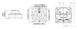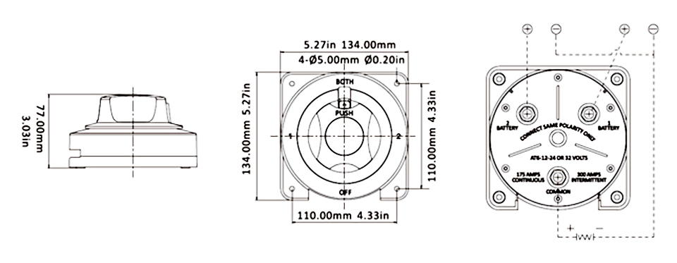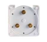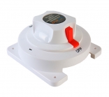 Коммутатор аккумуляторных батарей в белом пластиковом корпусе. 4 положения: включен первый аккумулятор, включен второй аккумулятор, оба аккумулятора включены параллельно, оба аккумулятора отключены.
