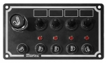 Новинка! Черное или серебристое алюминиевое основание. 4 тумблера, защищенных силиконовыми колпачками. Светодиодные индикаторы включения. Гнезда под плавкие предохранители. Прикуриватель.