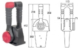 Приводы дистанционного управления газом и реверсом. Каждый рычаг управляет только одним тросом. Легкодоступная рукоятка позволяет в любой момент отрегулировать тормоз, предотвращающий самопроизвольное изменение положения газа (дроссельной заслонки, манетки ТНВД дизеля). Кроме того, приводы снабжены ограничителями свободного хода управляющих тросов. Возможна установка одного или двух постов управления (требуется комплект адаптеров, код 10015373). В качестве опции приводы могут быть оборудованы выключателями-блокираторамим нейтрали и (или) защелками нейтрали.