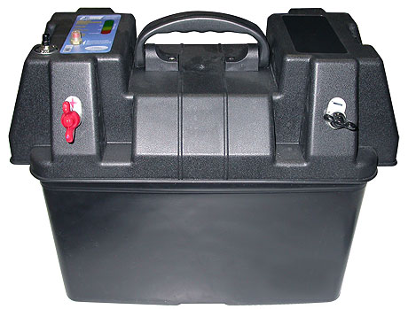 Вентилируемый полипропиленовый бокс для аккумулятора. Снабжен внешними винтовыми контактами (для подключения мощного оборудования — стартера подвесного двигателя, тролингового электромотора и т.п.), гнездом прикуривателя (для подключения маломощного оборудования — эхолота, зарядного устройства для телефона и т.п.), автоматическим предохранителем, светодиодным индикатором степени разряда и ручкой для переноски. Защищает аккумулятор от воздействия воды и соли, а трюм лодки — от вредного действия электролита. Изготовлен по специальному заказу компании «Мореман».
