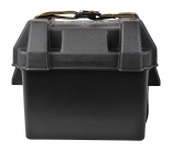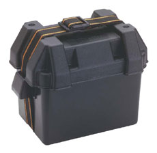 Вентилируемый бокс для аккумулятора из полипропилена. Снабжен удобными рукоятками со скругленными кромками и прочным ремнем, рассчитанным на 150-килограммовую нагрузку. Не подвержен действию кислот. Защищает аккумулятор от брызг, а трюм – от коррозии под действием вытекшего электролита.