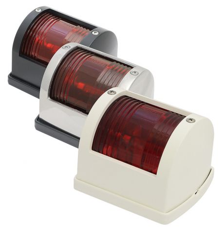 Красный бортовой отличительный огонь с лампой накаливания. Устанавливается на левом борту судна. Обеспечивает освещение сектора с углом в основании 112,5 градусов. Линза Френеля способствует распределению светового потока в горизонтальной плоскости, что увеличивает дальность видимости огня при неизменной мощности лампы. Рекомендуется для судов длиной до 12 м.