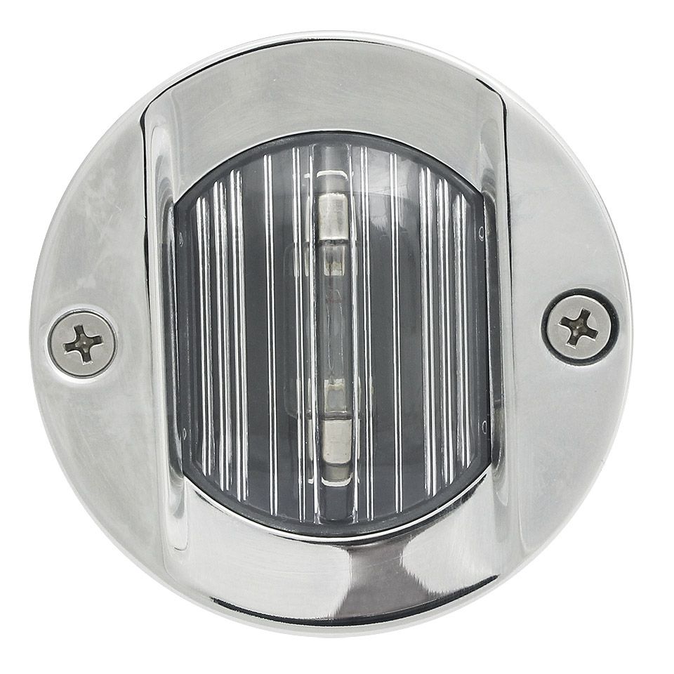 Врезной гакабортный огонь в корпусе из нержавеющей стали. Устанавливается в кормовой части судна, обеспечивая освещение сектора с углом 135 градусов.