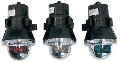 Отличительные огни в водонепроницаемых пластиковых корпусах для установки на гребных, надувных лодках и других, не имеющих постоянного электропитания, малых судах. В качестве источника энергии используются обычные батарейки (большие круглые). Ориентировочное время работы огней на одном комплекте батарей – 9 часов. Бортовые красный и зеленый огни снабжены зеркальными отражателями, обеспечивающими освещение в секторе с углом 112,5 градусов. Белый огонь с дугой освещения 135 градусов. Поставляются комплектом. Производитель: «Osculati», Италия.
