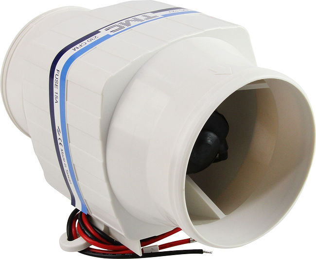 Осевой электровентилятор в пластиковом корпусе для вентиляции кают, моторных отсеков, трюмов и др. помещений. Может устанавливаться в любом положении (как вертикально, так и горизонтально).