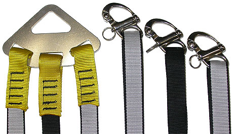 Набор нейлоновых строп для подъема тендера (тузика, разъездной лодки). Устойчивый к ультрафиолету материал, крепежные карабины из нержавеющей стали, возможность регулировки под любые типы лодок.