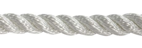 3-прядный нейлоновый трос. Обладает большей растяжимостью, чем полиэфирные (полиэстеровые) тросы - тянется примерно на 20% при 50% от разрывной нагрузки (для сравнения, полиэстеровые 3-прядные тросы -