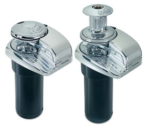 Комбинированная лебедка с вертикальным валом. Способна работать с цепью, тросом, а также комбинированным якорным концом (цепь + трос). Рекомендуется (в зависимости от мощности) для судов длиной от 6 до 12 метров (смотрите таблицу). Имеет функцию аварийного (свободного) спуска цепи (барабан освобождается с помощью входящей в комплект поставки рукоятки). Возможность выборки цепи вручную отсутствует. Особенностью данной модели является наличие редуктора патентованной конструкции, имеющего высокий КПД, благодаря чему лебедки «Crystal» обеспечивают большую тягу на каждую единицу мощности двигателя, нежели лебедки с традиционным редуктором. Благодаря вертикально расположенному двигателю данная лебедка может устанавливаться на палубу значительной толщины. Корпус, звездочка под цепь и барабан под трос — хромированная бронза. Двигатель защищен от действия воды (класс защиты IP67). Лебедка поставляется в двух вариантах — только со звездочкой под цепь или с дополнительным барабаном под трос. В комплект поставки входит реле включения нагрузки (соленоид).