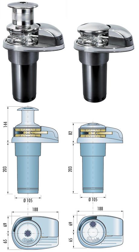 Новинка! Комбинированная лебедка с вертикальным валом. Способна работать с цепью, тросом, а также комбинированным якорным концом (цепь + трос). Рекомендуется (в зависимости от мощности) для судов длиной от 6 до 12 метров. Имеет функцию аварийного (свободного) спуска цепи (барабан освобождается с помощью входящей в комплект поставки рукоятки). Возможность выборки цепи вручную отсутствует. Особенностью данной модели является наличие редуктора патентованной конструкции, имеющего высокий КПД, благодаря чему лебедки «Prince DP2E» обеспечивают большую тягу на каждую единицу мощности двигателя, нежели лебедки с традиционным редуктором. Благодаря вертикально расположенному двигателю данная лебедка может устанавливаться на палубу значительной толщины. Корпус, звездочка под цепь и барабан под трос — хромированная бронза. Двигатель защищен от действия воды (класс защиты IP67). Лебедка поставляется в двух вариантах — только со звездочкой под цепь или с дополнительным барабаном под трос. В комплект поставки входит реле включения нагрузки (соленоид).
