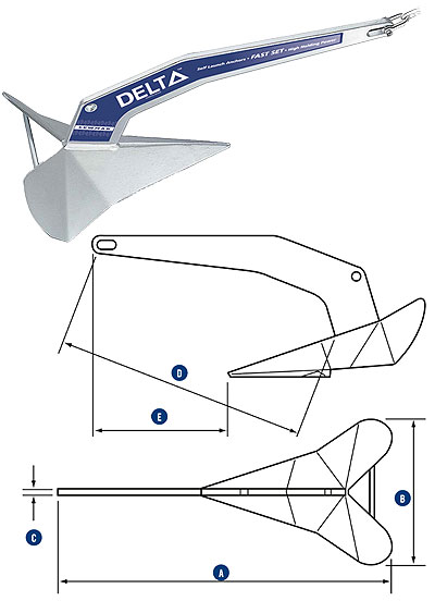 Масса якоря, кг | Рекоменд. калибр цепи, мм | Размер А | Размер B | Размер C | Размер D | Размер E |