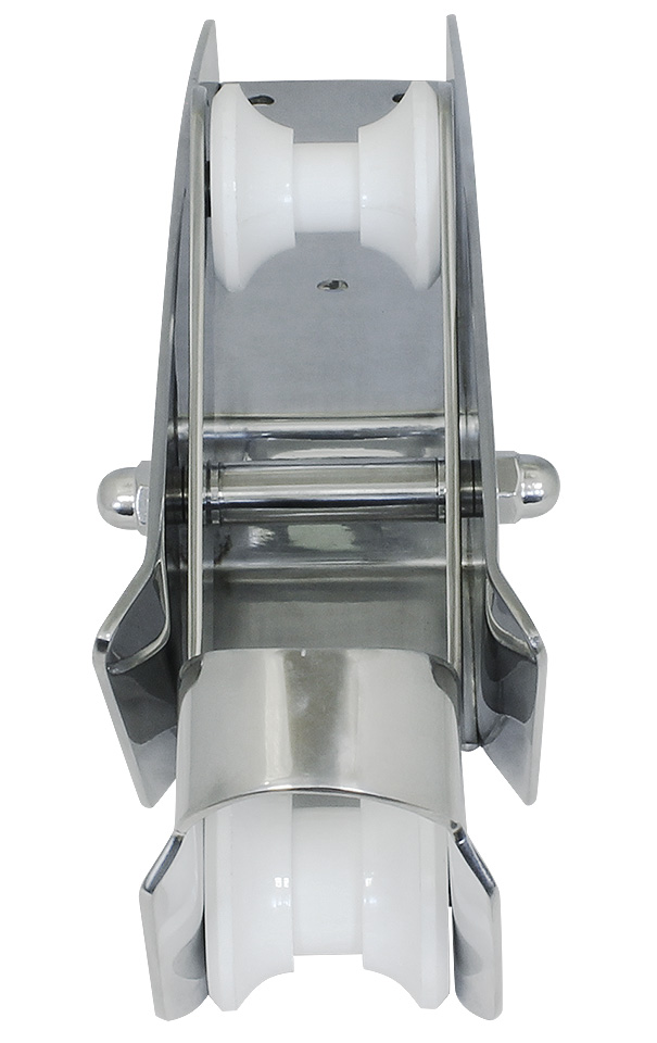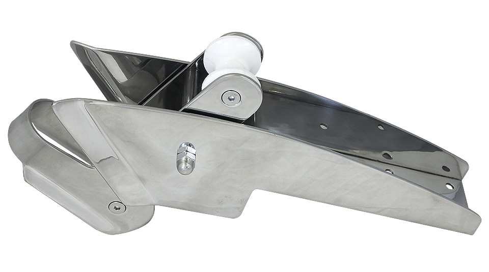 Роульс из полированной 5-миллиметровой нержавеющей стали. Снабжен коромыслом, облегчающим спуск и подъем якоря. Пригоден для всех типов безштоковых якорей весом 7,5-15 кг.