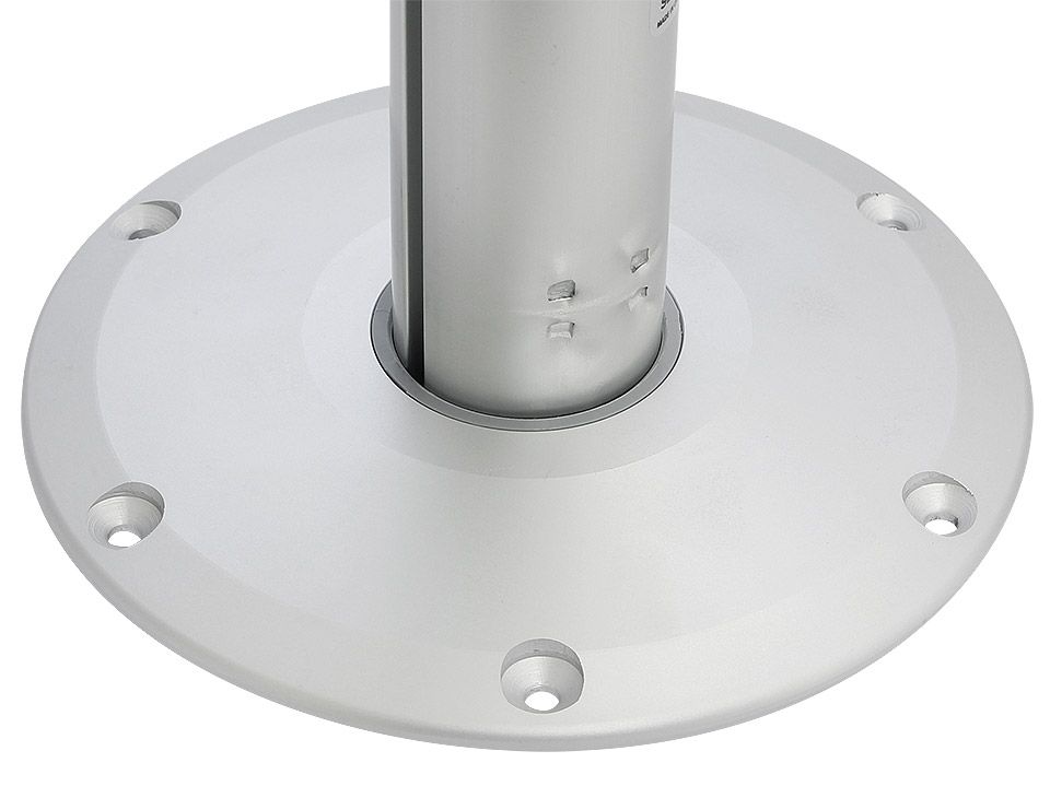 Демонтируемая стойка. Разъемный узел крепления основания (врезное) и стойки. Анодированный алюминий. Возможность поворота вокруг вертикальной оси. Не рекомендуется для использования на скоростных судах.