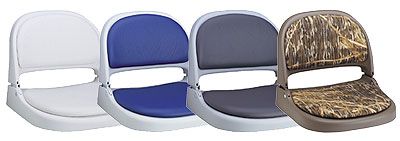 Компактное пластиковое сиденье с мягкими виниловыми накладками. Спинка складывается и фиксируется защелкой. Задняя часть спинки имеет выемку, которая может быть закрыта накладкой. Размеры (ширина, глубина, высота): 48х46х40 см. Цвета: белый, синий, серый, камуфляж. Производитель: «Attwood», США.