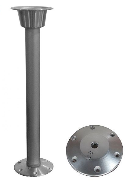 Демонтируемая стойка для столешниц. Анодированный алюминий. Возможность поворота столешницы вокруг вертикальной оси. Стопор для предотвращения самопроизвольного отворачивания. Основание не имеет врезаемой части и может быть закреплено на любой плоской поверхности! Смонтировав дополнительные основания, можно устанавливать стол в любой части судна.
