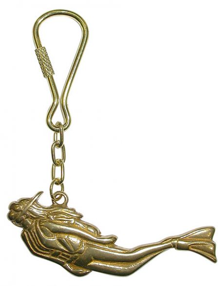 Стилизованная фигурка аквалангиста из полированной бронзы с цепочкой и карабином для ключей.