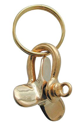 Бронзовая модель гребного винта, соединенного такелажной скобой с пружинным кольцом для ключей.