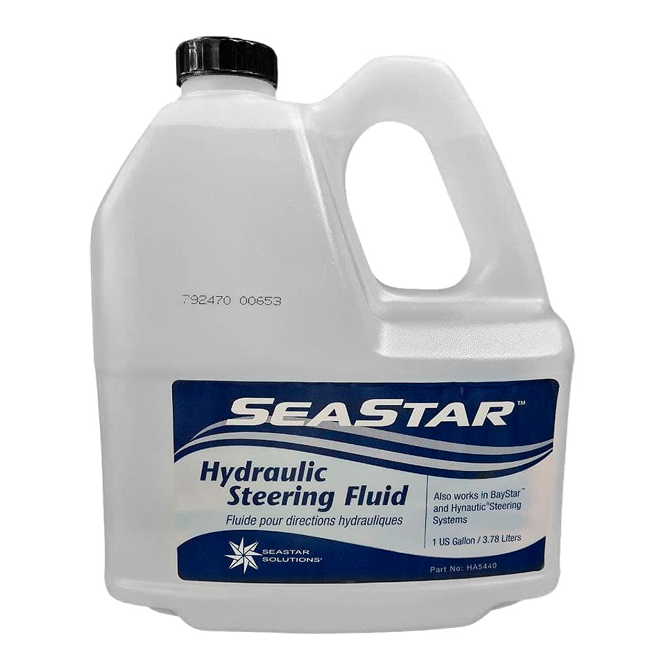 Гидравлическое масло для систем рулевого управления «BayStar» и «SeaStar». Для стандартной рулевой системы требуется (с некоторым запасом) 2 литра масла, каждый дополнительный компонент системы (второй рулевой пост, авторулевой, гидроусилитель и т.п) требует дополнительно 1 литр масла.