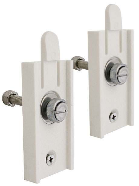 Кронштейн, позволяющий быстро демонтировать трап (лестницу). Предупреждает самопроизвольную отдачу. Для демонтажа достаточно нажать на пластиковые фиксаторы. В компекте два винта из нержавеющей стали. Фиксирующие трап головки винтов — никелированная бронза.