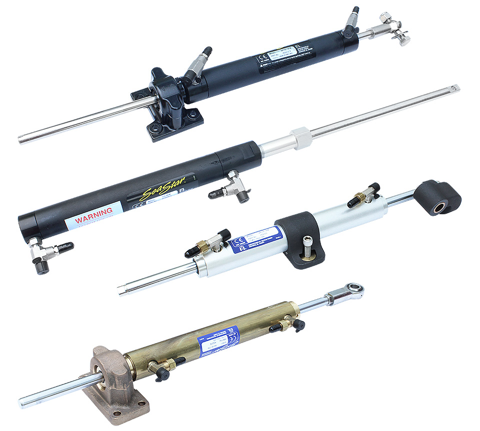 Гидроцилиндры «SeaStar». Предназначены для использования с подвесными двигателями мощностью до 300 л.с. (600 л.с. в случае установки двух двигателей с винтами встречного вращения) и стационарными двигателями. Совместимы с гидравлическими шлангами «SeaStar.