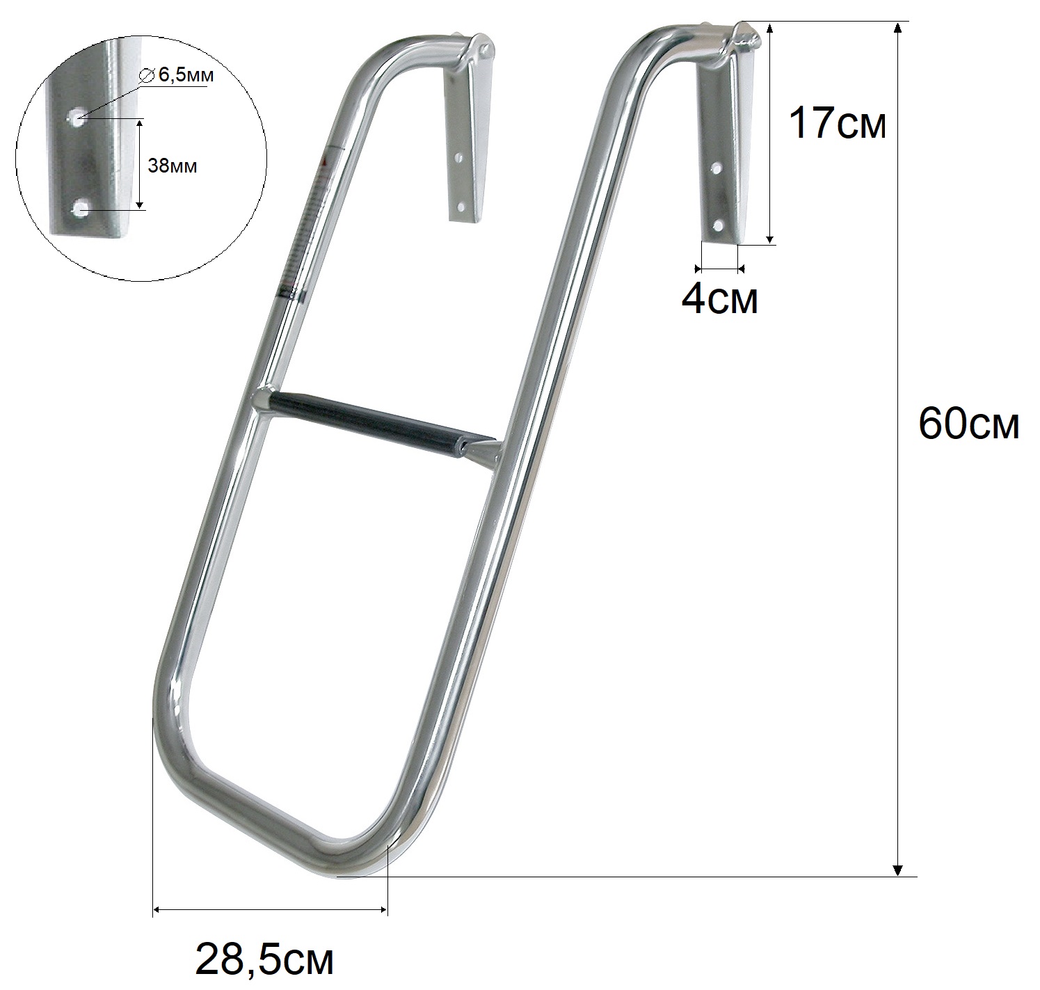 Трап складной Г-образный из нержавеющей стали. Две ступеньки с нескользящим резиновым покрытием.