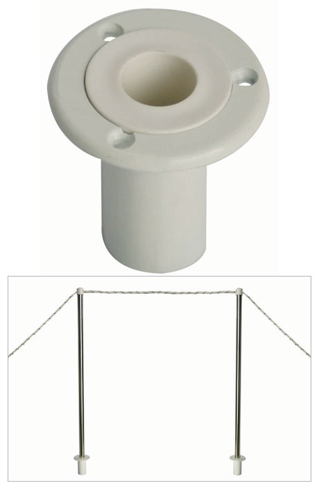 Монтажное гнездо для крепления трапа-сходни к борту судна и набор леерных стоек (2 шт) с леером.